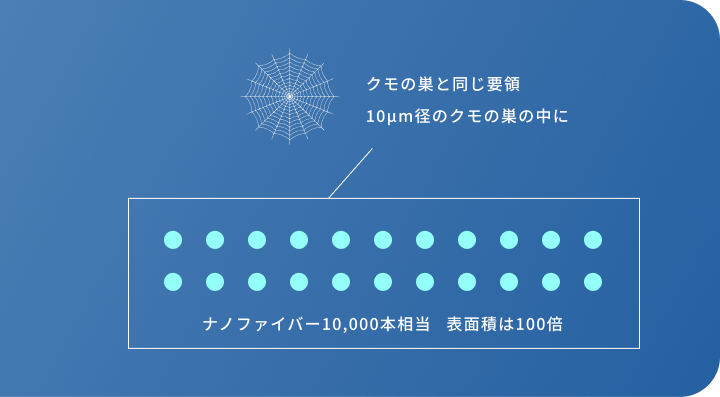 この微細な構造により、ナノファイバーは従来の繊維にはない、優れた特性を発揮します。