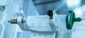 ポリマー溶液またはポリマーメルトをシリンジ(注射器型の容器)に入れ、高電圧電源と接続します。